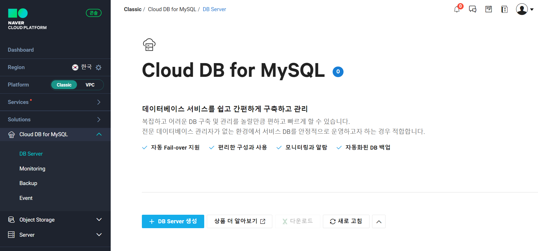 이번 포스팅에선 NCP가 제공하는 데이터베이스 서비스인 Cloud DB for MySQL을 실습해 보자.