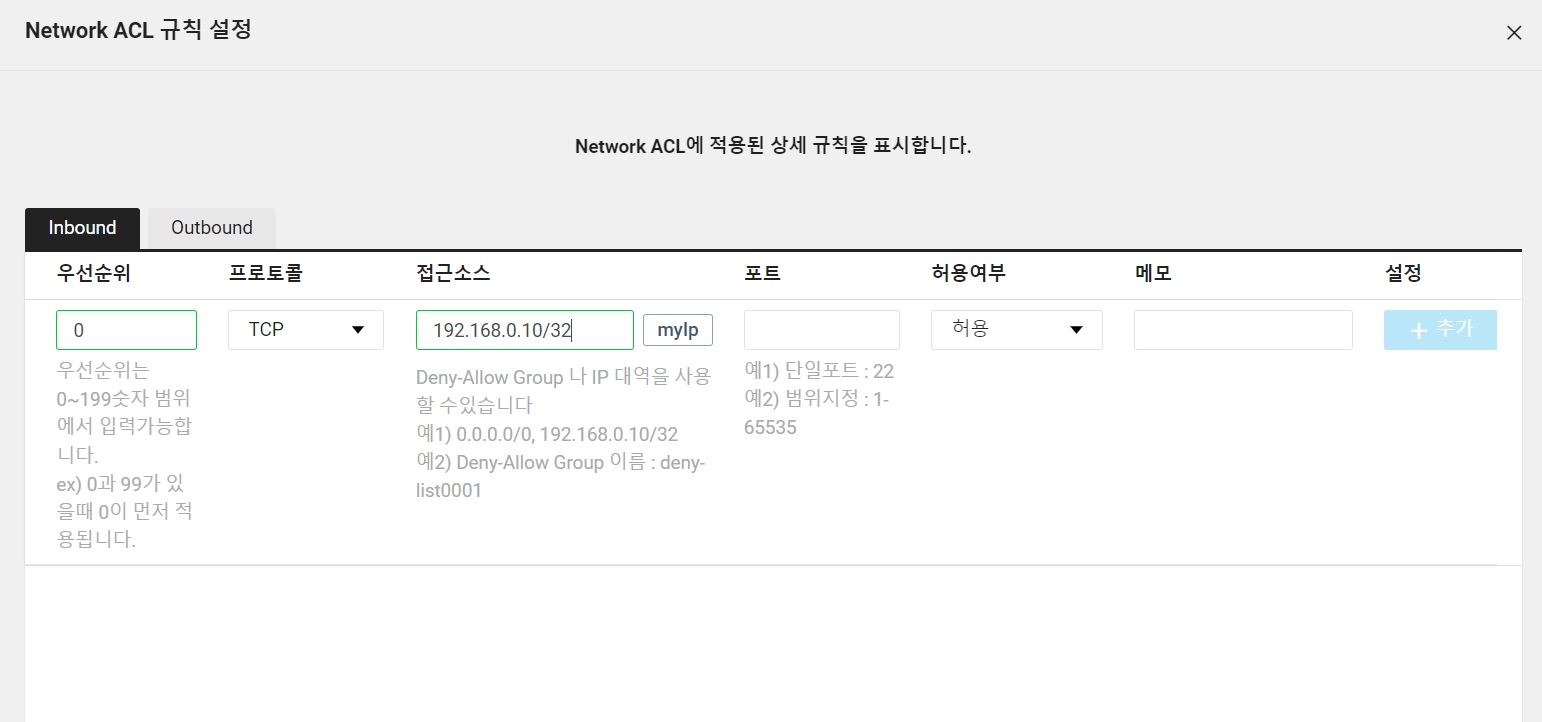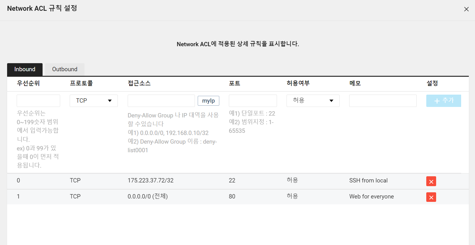생성 > 해당 Network ACL > 'Rule 설정' 선택