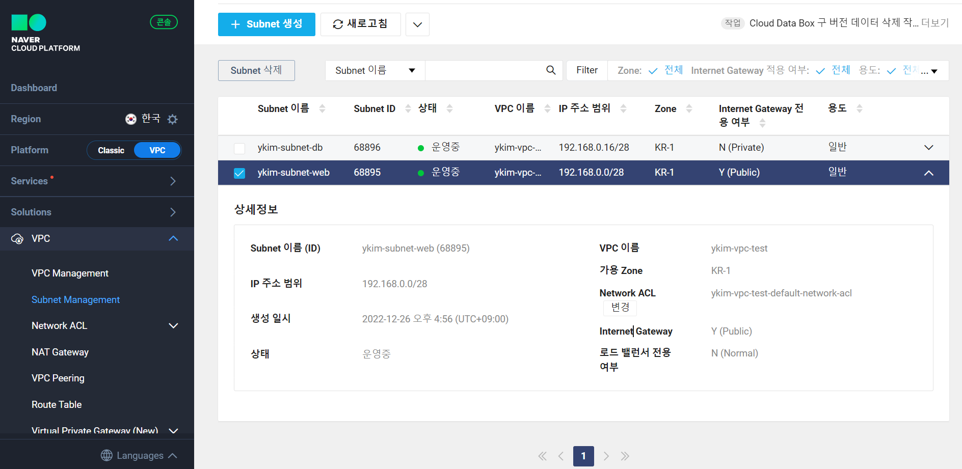 [NCP] VPC환경에서 Web-DB 연동서버 구축하기 (1) 본문