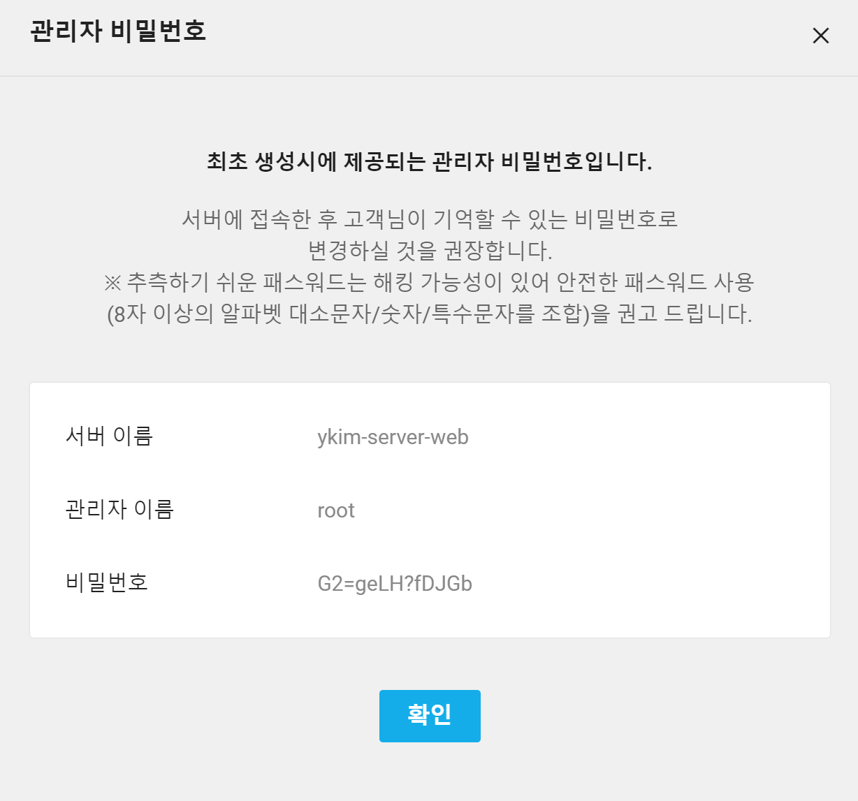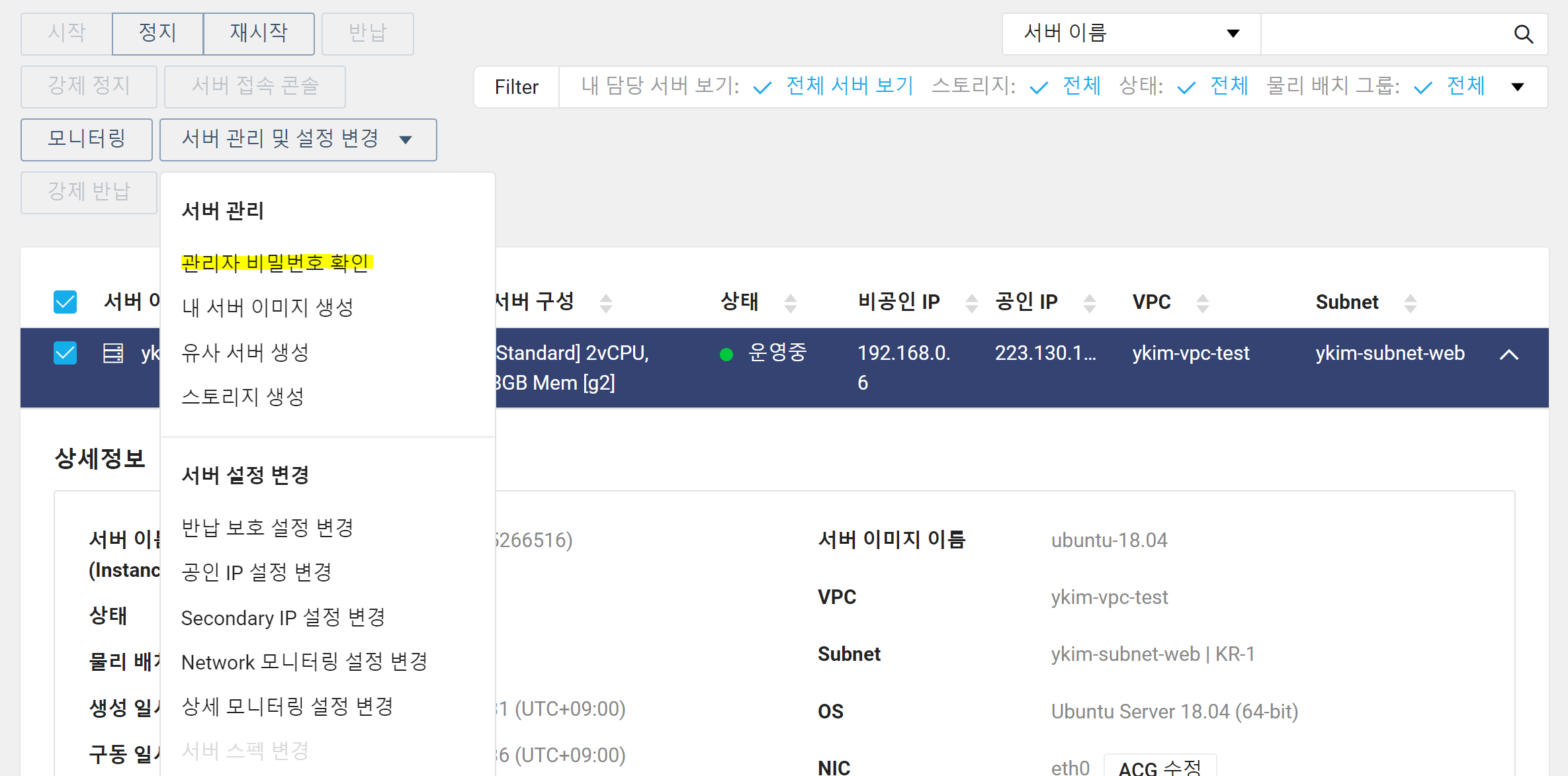 콘솔 > Server > 해당 서버 > '서버 관리 및 설정 변경' 스크롤 > '관리자 비밀번호 확인' 선택