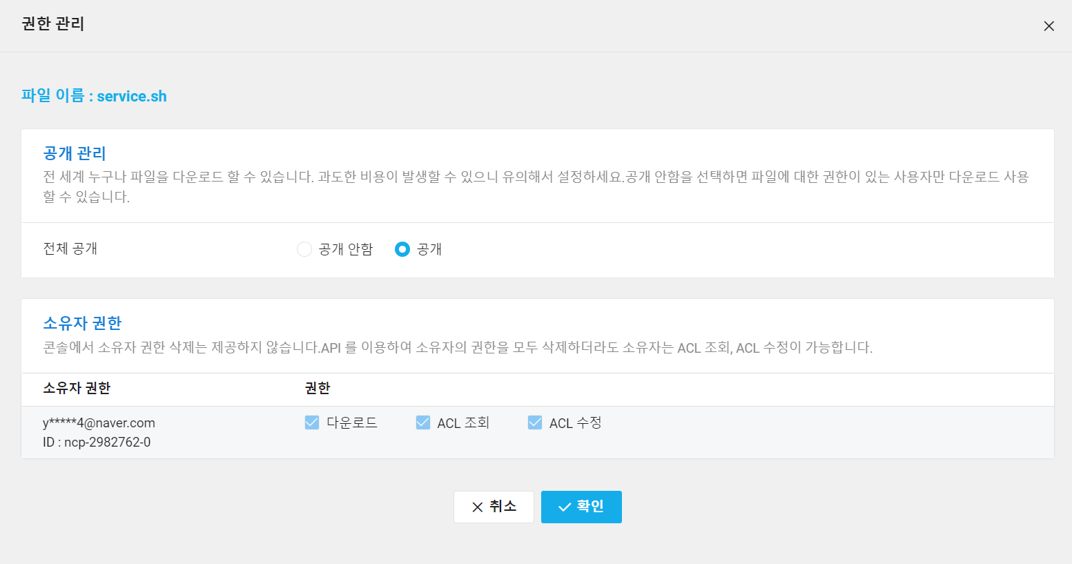 $ sudo wget https://kr.object.ncloudstorage.com/ykim-bucket-test/service.sh