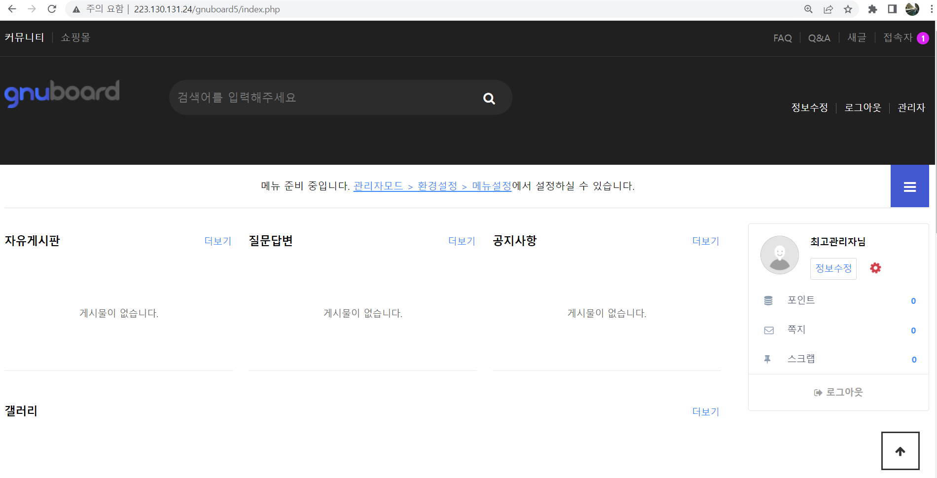 웹서버에서 구동될 서비스로 오픈소스 'Gnuboard5'를 활용한다. 추후 간편한 설치를 위해 스크립트 작성하여 Object Storage에 업로드하면 여러 사용자가 필요시 다운로드하여 설치할 수 있다.