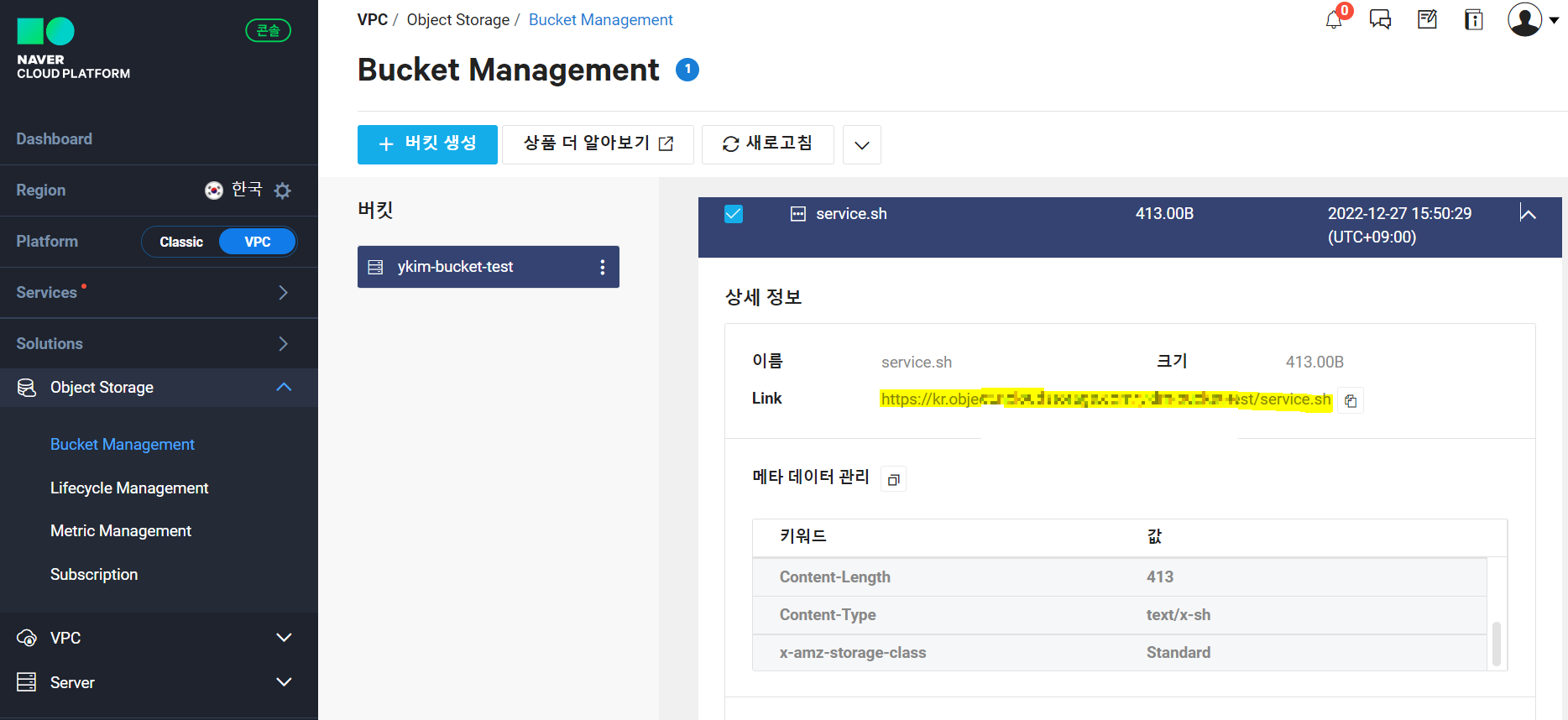[버킷 생성 참고] 2022.12.26 - [클라우드 기초/Naver Cloud] - [NCP] 처음 만나는 네이버 클라우드 - Object Storage 만들기