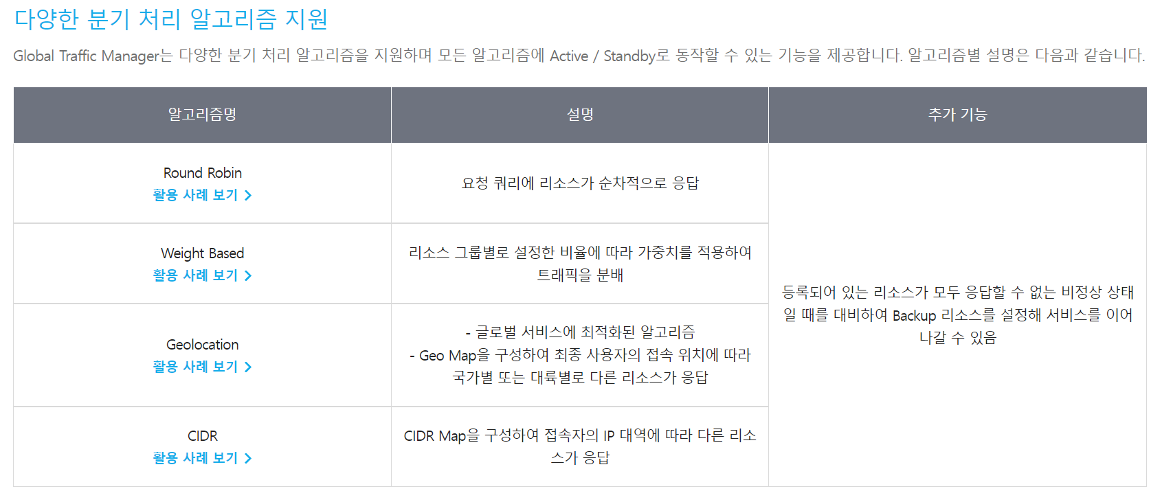 11. Global Route Manager가 지원하는 로드밸런싱 방식은?