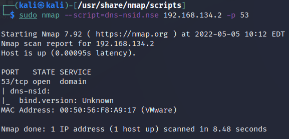 $sudo nmap --script=dns-nsid.nse 192.168.134.2 -p 53