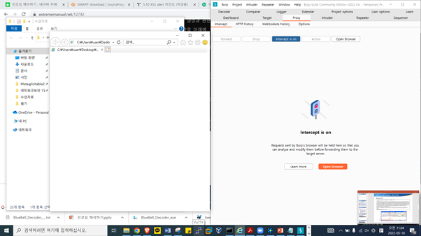 이때 로컬 프락시 (Local Proxy)를 활용하여 사이트에 대한 직접 방문 없이 디코딩이 가능하다. 로컬 프락시는 Burp suite프로그램이 사용되었다.