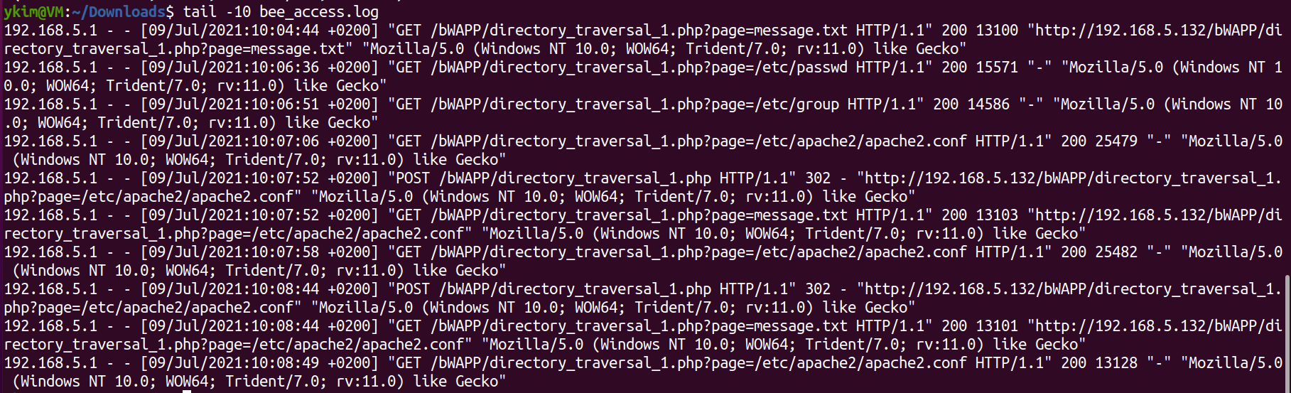 // 분석 대상 로그파일에 대한 최근 10개 로그 확인