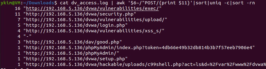 $ cat dv_access.log | awk '$6~/"POST/{print $11}'|sort|uniq -c|sort -rn