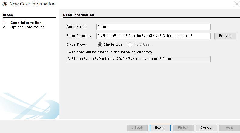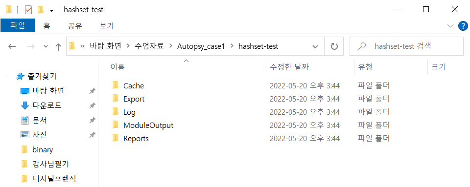 : 사건(케이스) 폴더는 포렌식의 원칙에 따라 시스템 드라이브와 분리한다. 시스템 오류 발생으로 인해 포렌식 자료에 대한 피해 가능성을 최소화하기 위함이다. 물리적으로 어렵다면, 논리 파티션이라도 분리를 해야 한다.
