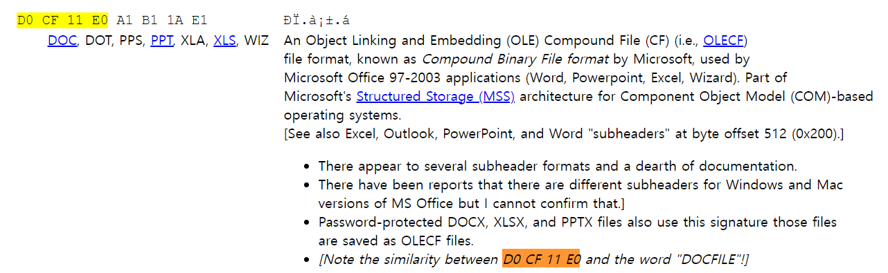 : MS문서(word, excel, ppt..)와 압축파일(. zip)의 파일 시그니처는 PK로 동일