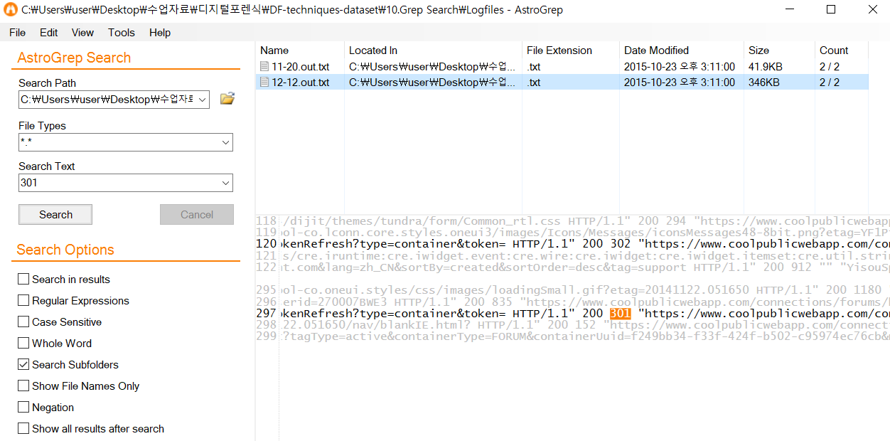 : 포털 사이트별로 URL 검색 패턴을 특정할 수 있다. 이를 통해 사이트별 검색기록을 열람할 수 있다.