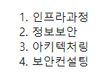 <select><option>보안관제</option><option>모의해킹</option><option>보안컨설팅</option><option>취약점진단</option>하나를 선택하시오.</select>