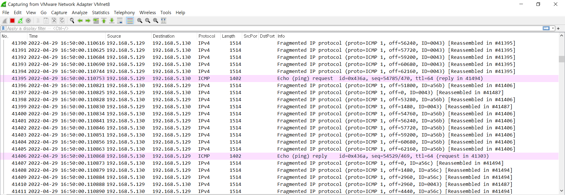공격자 명령어에 지정된 65000byte는 총 44개로 쪼개진다. 이에 대한 요청으로 수신측은 재조립을 해야하고 이를 통한 CPU 소모가 발생한다. => 정상적인 요청에 응답이 느려진다.