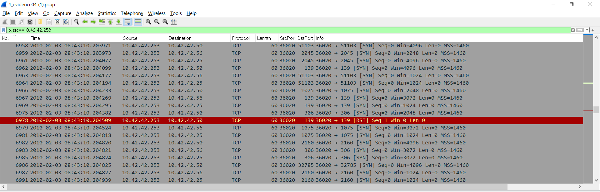 Q2. Mr.X가 수행 한 첫 번째 포트 스캔의 경우 어떤 유형의 포트 스캔인가? (스캔은 수천개의 패킷으로 구성됨)