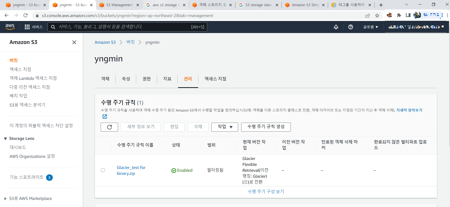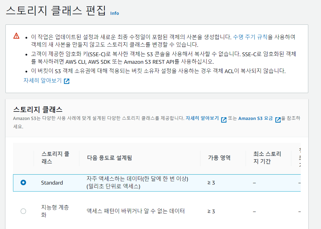 : 객체 업로드시 초기 클래스를 선정한다. 후에 데이터의 저장 유형 및 특정 조건에 따라 저장 유형(클래스)을 자동으로 변환시켜주는 '수명주기 규칙'을 설정할 수 있다.