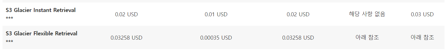 Glacier Instant retrival: 기존 Flexible서비스에서 인출시간을 단축시킨 서비스, 비용은 상대적으로 높음