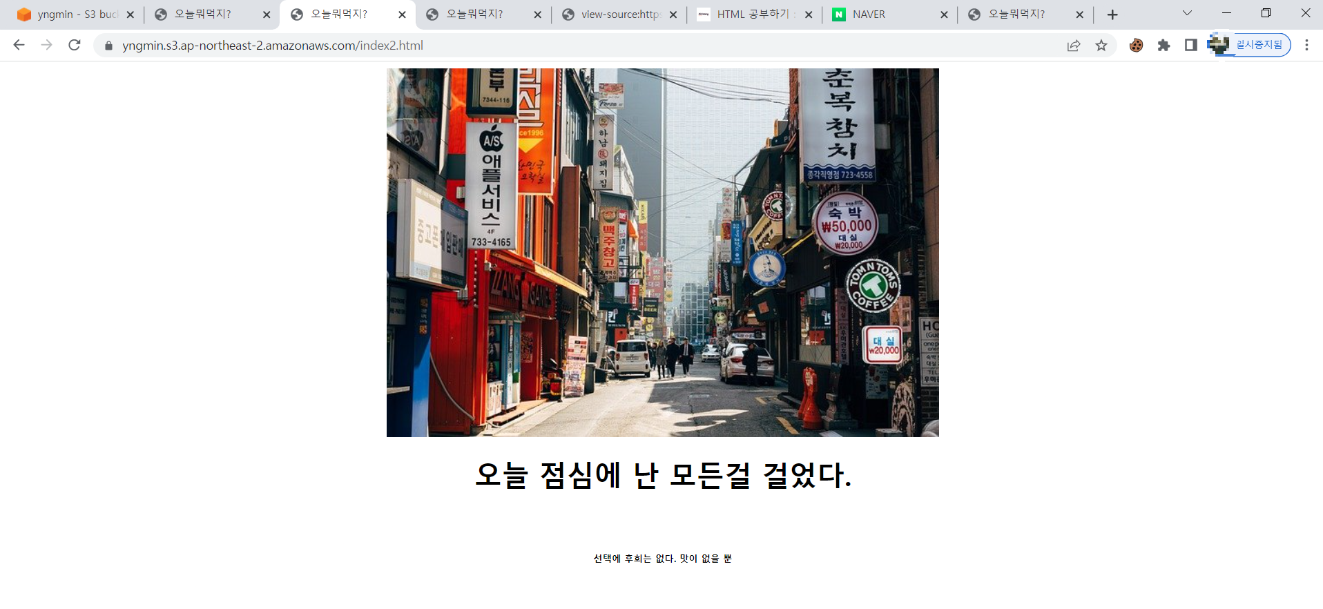 http://yngmin.s3-website.ap-northeast-2.amazonaws.com/ (웹사이트 주소 접근)