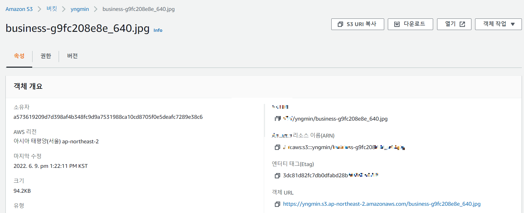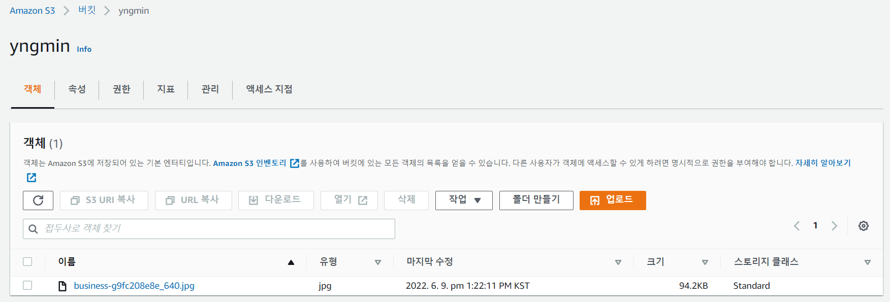 참고) 버킷의 메뉴는 6개, 객체의 메뉴는 3개 구분할 때 용이하다.