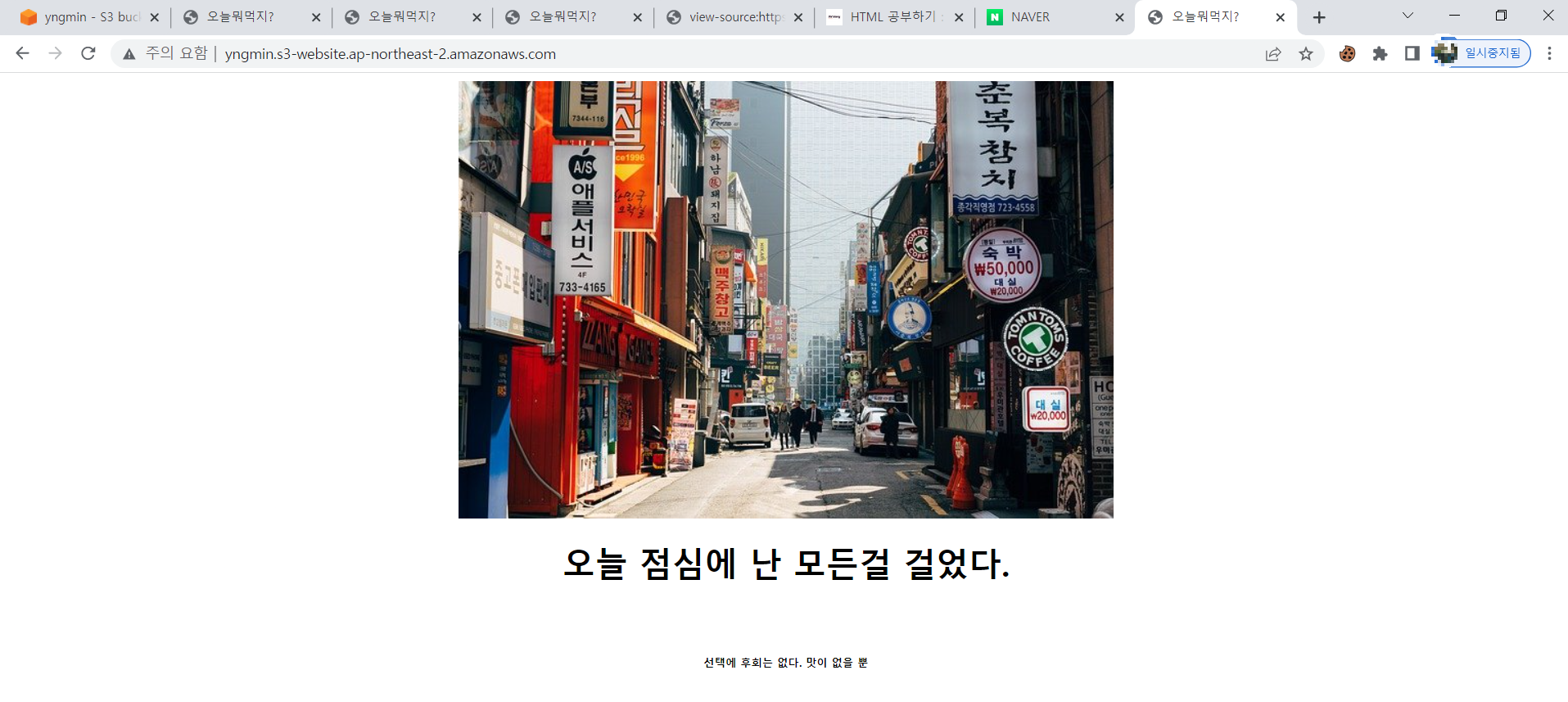 http://yngmin.s3-website.ap-northeast-2.amazonaws.com/ (웹사이트 주소 접근)