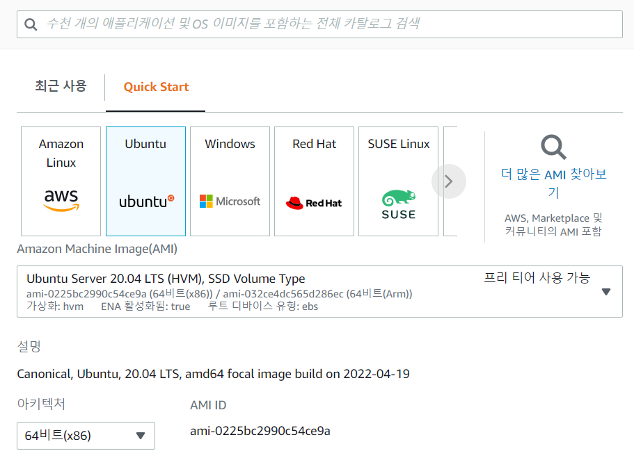 AMI(Amazon Muchine Image): 서버에 필요한 운영체제 및 여러 소프트웨어로 구성된 탬플릿