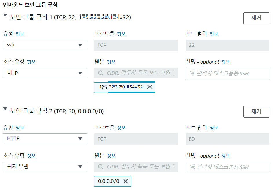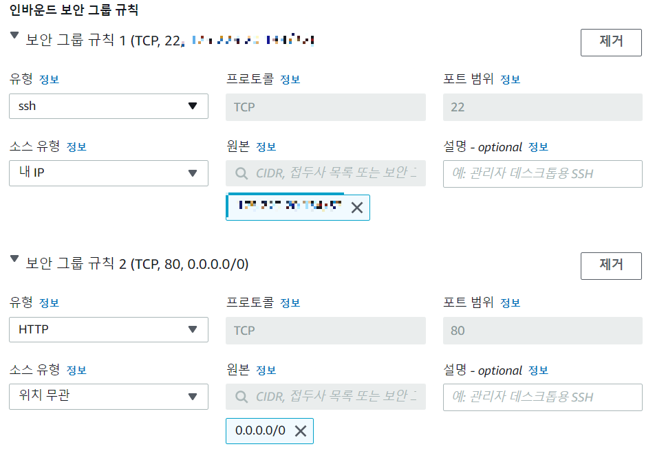 : AWS EC2에서 방화벽 역할을 하는 보안 그룹(Security Group) 기능을 설정할 수 있다.