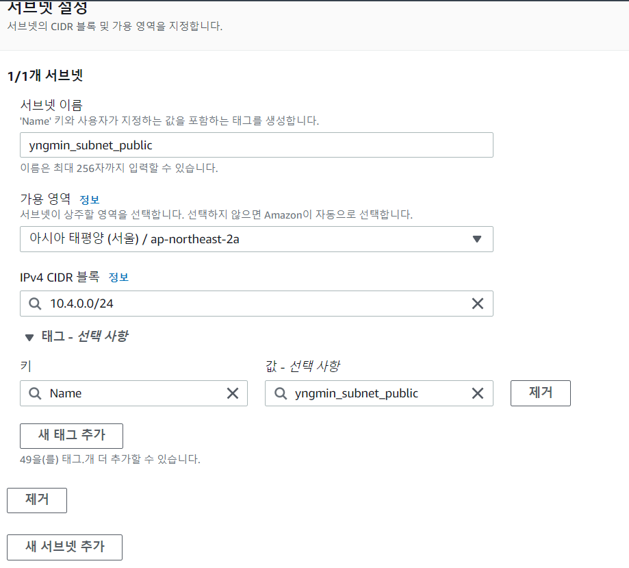 해당 VPC선택 => 가용 영역 선택(Zone) => 생성