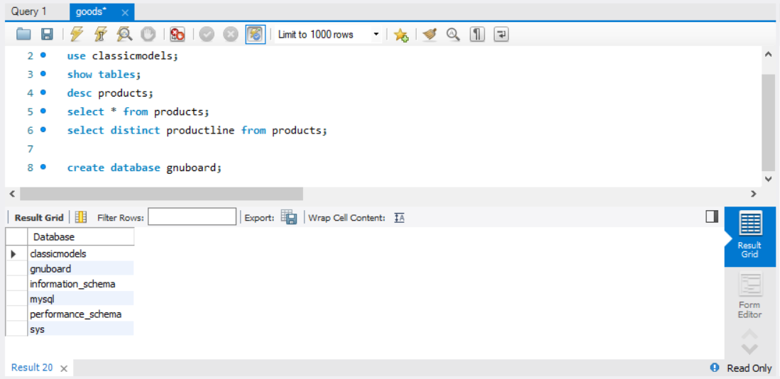 상위 과정은 모두 gnuboard에서 진행, RDS DB에서는 database만 생성