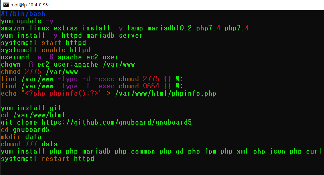 $ sudo sh amzn1.sh // 셸 스크립트 시작 httpd설정 + 웹 툴 + gnu보드 설치