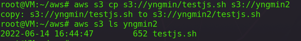 # aws s3 cp s3://yngmin/testjs.sh s3://yngmin2 //S3 => S3 파일 복사